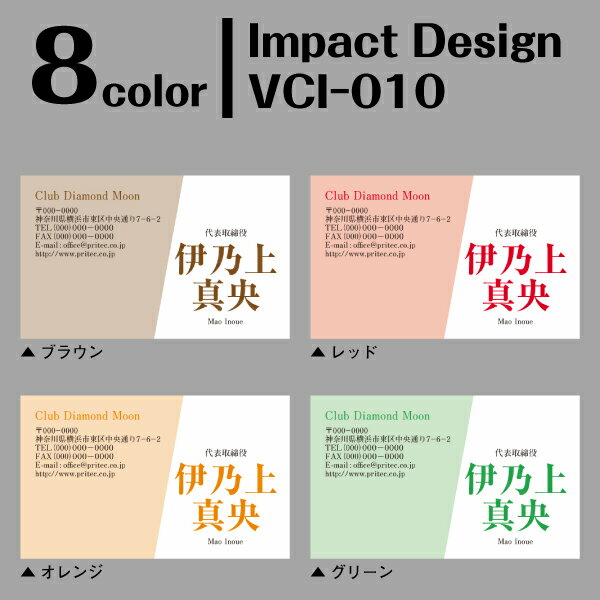 | 名刺印刷 | 名刺作成 | インパクトデザイン | 8カラー | 商品サンプル画像は、ご覧いただくモニタにより色の見え方が多少違って見えます。